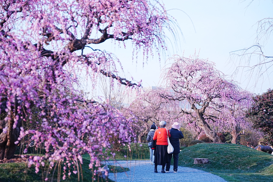 來自成都的王芳對其中一棵“梅王”印象最深,這棵“梅王”勝在高大,高達三層樓,狀態(tài)最佳時,超過1.2萬朵梅花鋪滿枝頭,宛如一道瀑布,視覺效果極為震撼。她表示,成都也有許多欣賞梅花的好去處,每年都會賞梅,今年來上海度假,沒想到這里也有那么多造型奇特的梅花。